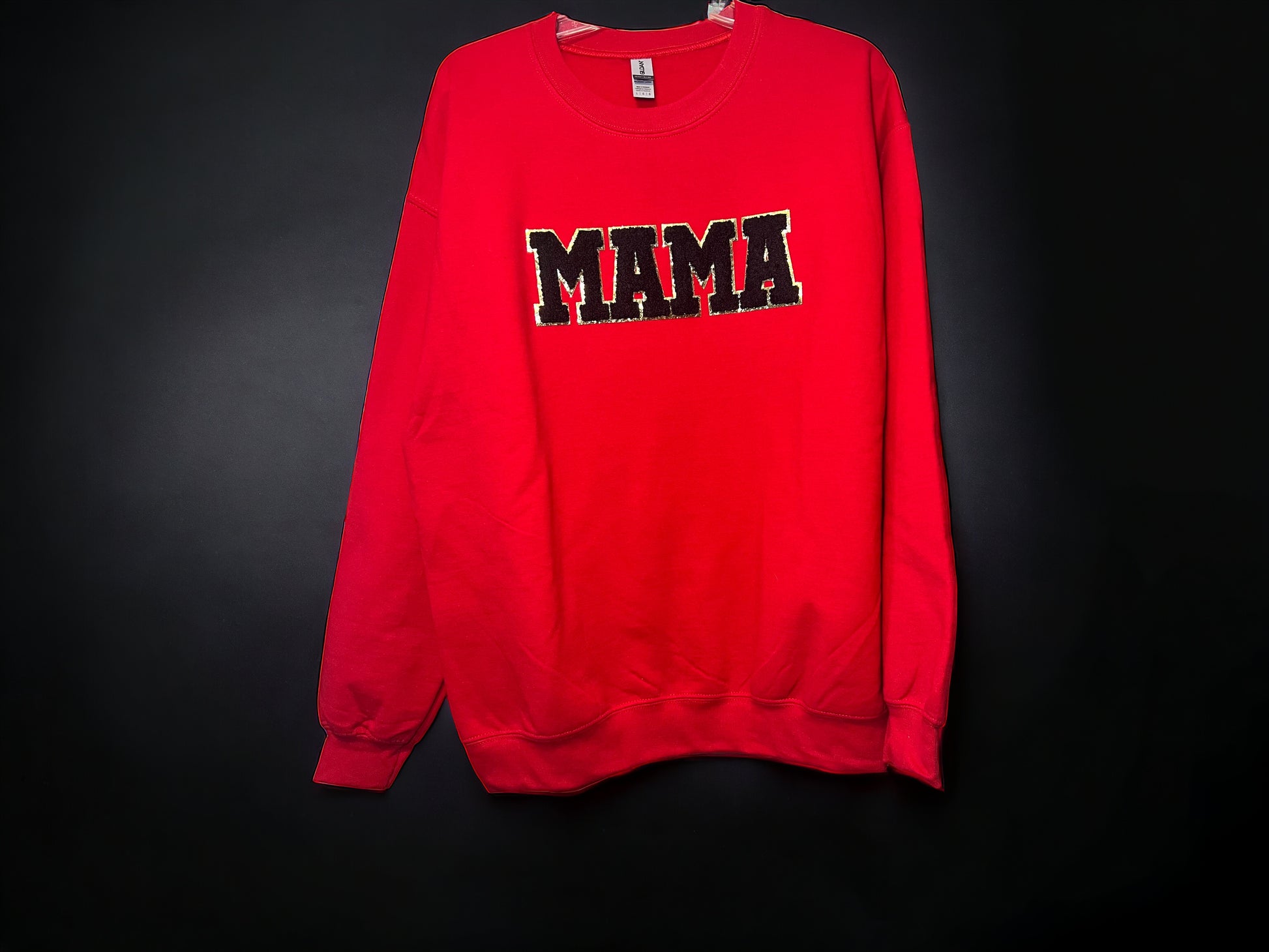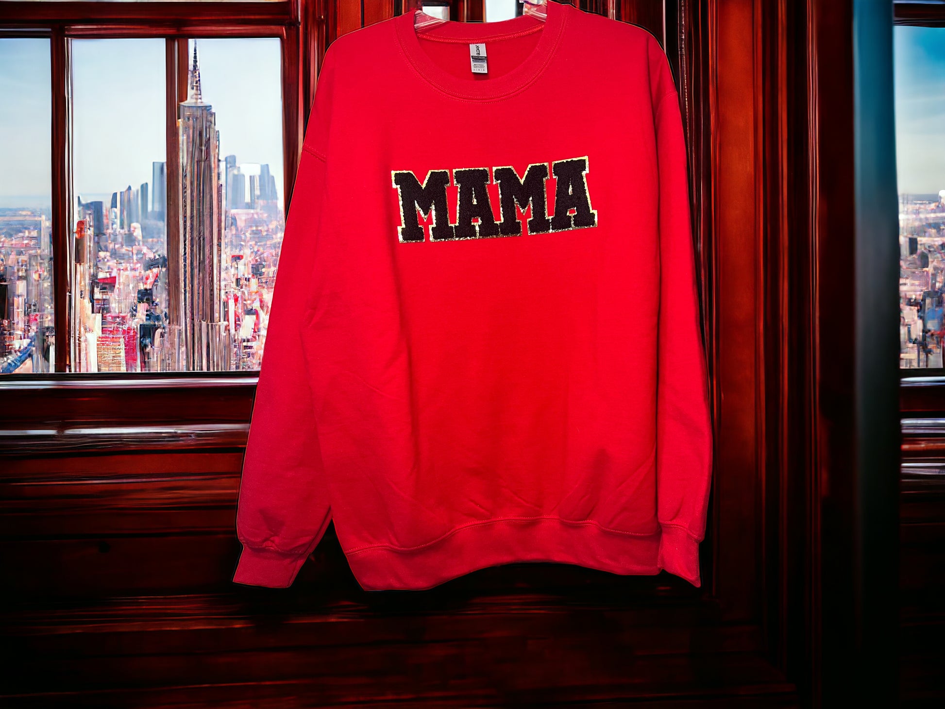 So elevate your style with our Red Sweatshirt featuring a Black Chenille Patch outlined in Gold. With its luxurious look and comfortable feel, it's the perfect choice for adding a touch of elegance and sophistication to your everyday look.